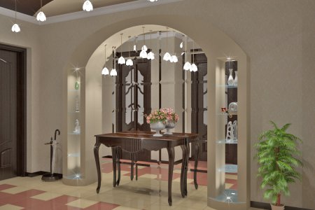 Если вы воспользовались советом и расширили пространство цветом обстановки и тонами отделки, то можно использовать приглушенное освещение: небольшой потолочный светильник или скромное бра. Можно также потратиться на многоуровневое освещение, тогда части прихожей можно зонировать. Многие дизайнеры советуют использовать массивный потолочный светильник, чтобы уравновесить скромный интерьер.