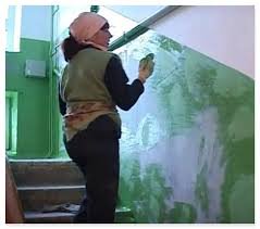 Шпателем или другим любым острым предметом нужно счистить старую покраску. Если штукатурка очень плохо отделяется от поверхности стены, то нужно сбить ее молотком до самого основания, после этого можно ее укрепить новым слоем штукатурки.