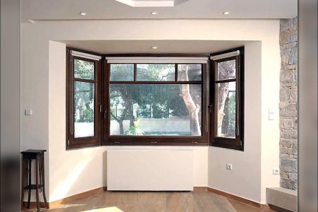 Кстати, эмаль на реставрационные окна можно наносить с помощью разных эффектов. Раму можно покрыть напылениями под мрамор или металл, а для изысканных дизайнерских решений – даже под ткань. Самым интересным будет покрытие с эффектом патины. Можно оставить и естественный цвет дерева, но тогда окно покрывается лаками и морилкой.