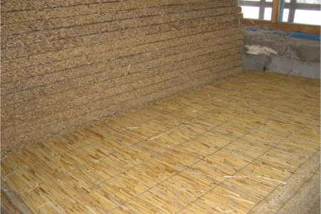 Еще один природный утеплитель – камышит. Как уже понятно из названия, этот материал изготавливают из прессованного камыша. Он прекрасно подходит для заполнения каркасных стен и перегородок больших зданий. Дополнительно, во время изготовления плит из камышита, стебли прошивают поперек проволокой. Плиты этого утеплителя не делают короче 2,5 метров в длину и от полуметра до почти полутора в ширину. Камышит должен иметь ровные торцовые срезы. Благодаря сильному прессованию утеплитель не горит, но хорошо тлеет. Поэтому их предварительно лучше пропитать раствором железного купороса. Это самый дешевый из органических утеплителей. Но и минусов у него достаточно: материал плохо держит гвозди, быстро загнивает, его могут испортить грызуны. Его необходимо обязательно штукатурить. Лучше всего покупать камышит для утепления ограждающих конструкций жилых, общественных и промышленных зданий.